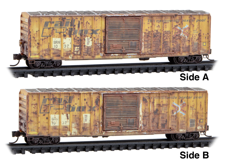50' Rib Side Single Sliding Door Box Car Sabine River & Northern - SRN - #1032 ex-Railbox Yellow Car w/Black Lettering ----------------- Weathered, NO Graffiti |