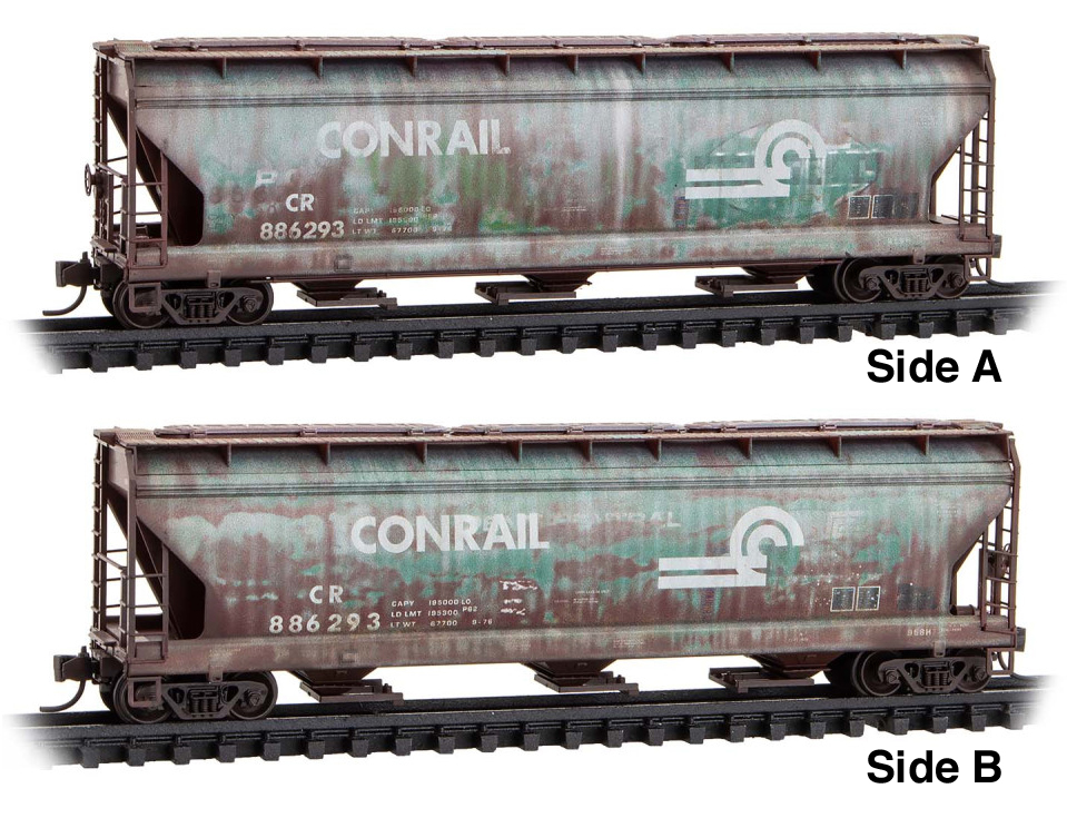 ACF 3 Bay Covered Hopper Car Conrail - CR - #886293 ex-Penn Central Peeling Brown Car w/White Lettering ---------- Weathered, NO Graffiti |